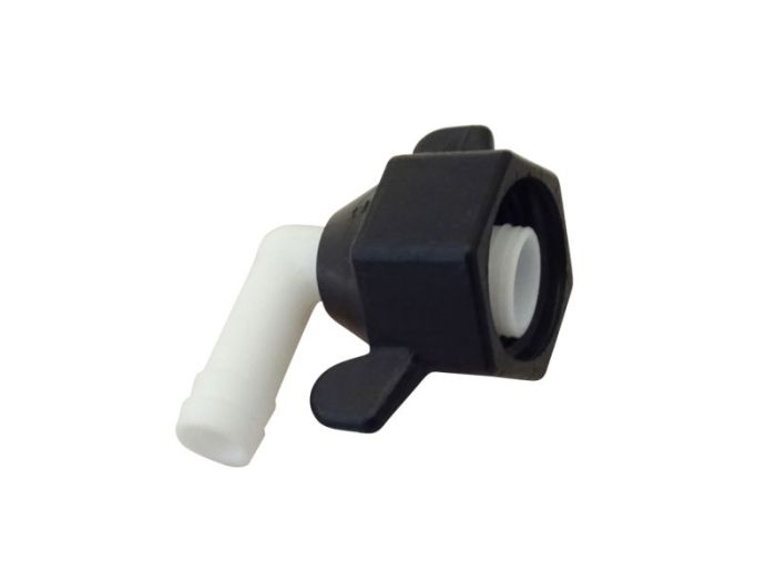 La tétine de raccordement coudée Shurflo est adaptée aux tuyaux avec un diamètre de 10 mm.