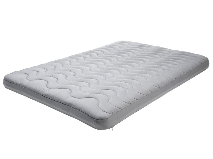 La face supérieure rembourrée et moelleuse rappelle un surmatelas haut de gamme, rendant la surface de couchage particulièrement douillette et confortable.