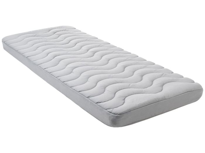 La face supérieure rembourrée et douce rappelle un surmatelas de qualité supérieure, ce qui rend la surface de couchage particulièrement moelleuse et accueillante.