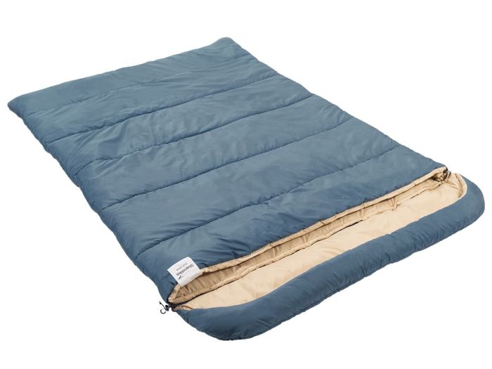 Ce sac de couchage extra large et chaudement doublé de Skandika est parfait pour les couples et séduit par sa forte isolation thermique, sa surface douce au toucher et sa tête de lit confortable avec oreiller. Un sac de couchage double confortable et chaud avec la touche supplémentaire de luxe et de confort qui fait la différence entre dormir et vivre la meilleure expérience de sommeil possible pour la prochaine aventure en plein air.