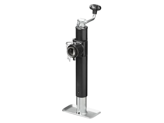 Béquille pour timons de remorque ou de caravane. Stabilisez votre caravane ou votre remorque rapidement et facilement grâce à cette béquille en acier galvanisé. Si votre timon n'est pas équipé d'une roue avant, cette béquille est la solution. Grâce à sa manivelle, la béquille s'allonge de 39 cm à 64 cm de hauteur et, avec une capacité de charge maximale de 1 000 kg, elle convient à la plupart des timons. Caractéristiques : - Max. 1 000 kg - Min. - Hauteur maximale : 39-64 cm - Tube : environ Ø 57 mm - Dimensions de la plaque de base : environ 180 x 100 mm - Avec élingue supérieure (non amovible) - Extensible et pliable - Boulon de verrouillage inclus - Adaptateur/bride soudable inclus - Matériau : acier galvanisé thermolaqué