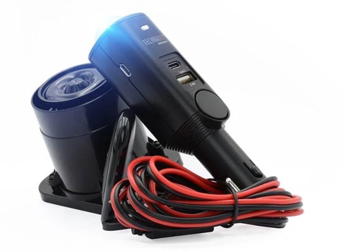 L'alarme de voiture Technaxx TX-168 se branche sur la prise 12 V de votre véhicule. Cela permet d’activer un système d'alarme complet avec détecteur de mouvement et sirène. Un appareil idéal pour quiconque à la recherche d'une sécurité renforcée pour son camping-car, son fourgon ou sa voiture.