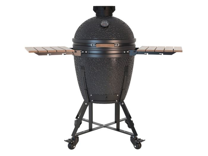 Le barbecue est fabriqué en céramique de cordiérite, ce qui lui permet de résister à de hautes températures. Le gril a un diamètre de 49 centimètres. Assez grand pour au moins 8-10 personnes!