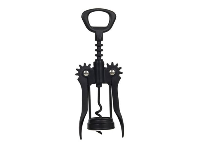 Le tire-bouchon Kitchen Tools est fabriqué en métal avec une finition de couleur noire. Le tire-bouchon se visse facilement dans le bouchon et le film peut être facilement retiré avec le cutter.
