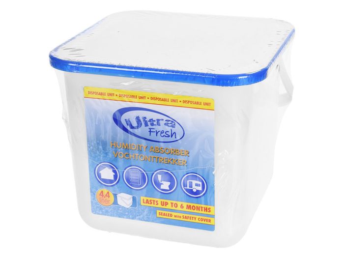 L'absorbeur d'humidité Ultra Fresh a une grande capacité de 4,4 litres. Grâce à cette grande capacité, cet absorbeur est fonctionnel jusqu'à 6 mois ! L'absorbeur d'humidité est idéal pour la maison, le bureau, la caravane, le camping-car ou le bateau.